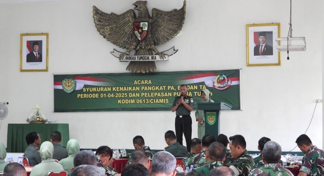 Ciamis,aspirasidirect.com. – Kodim 0613/Ciamis menggelar acara Syukuran Kenaikan Pangkat bagi para prajurit Perwira, Bintara, dan Tamtama (PA, BA, TA) periode 1 April 2025, yang dirangkaikan dengan acara Purna Tugas bagi anggota yang telah menyelesaikan masa baktinya di lingkungan TNI AD.